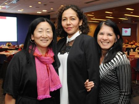 Milagros Oliva (center) celebrates her RN Advocate award with NYU Langone Hospital–Brooklyn colleagues Bimala Sherpa (left) and Maria Castillo.