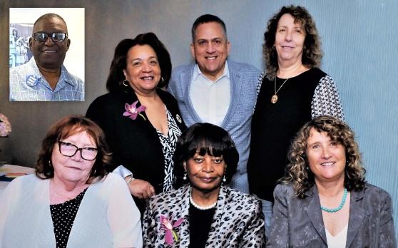 Retired Paraprofessionals Support Team: Top row, L to R - Reginald Colvin (insert), Carmen Alvarez, Steven Chazanow and Lisa Viscovi; Bottom row, L to R - Lorraine Ferrannini, Shelvy Young-Abrams, and Gail Warren