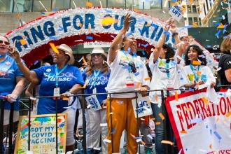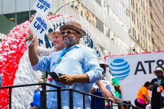 UFT members and other frontline workers were honored at a ticker-tape parade through the Canyon of Heroes in Lower Manhattan on July 7.