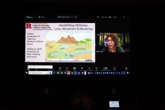 Rutgers labor studies professor and keynote speaker Sheri Davis presents a slideshow presentation, “HonHERing HERstory.”