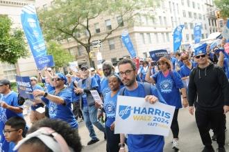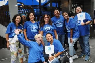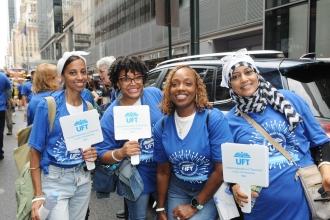 More than 1,200 UFT members came out in force on Sept. 7 to take part in New York City's annual Labor Parade. Members and their families gathered on 46th Street before parading up Fifth Avenue to Central Park on foot, by float or atop double-decker buses in solidarity with their counterparts from other unions across the city.