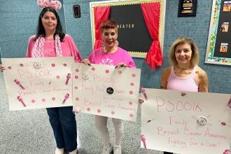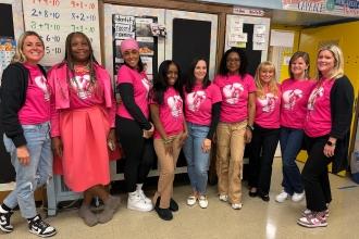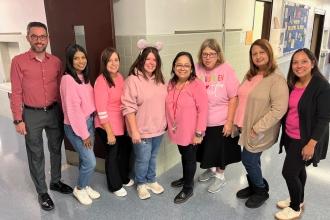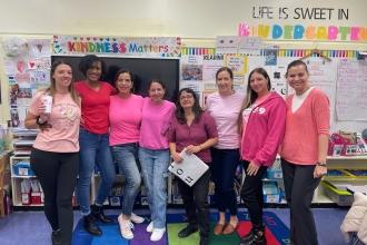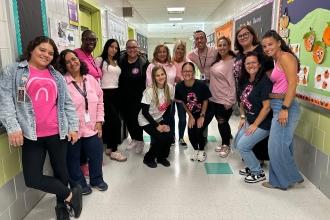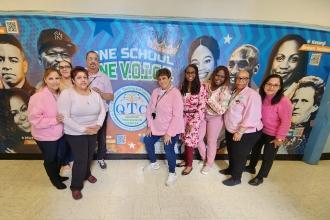 Educators at PS 61 Francisco Oller in the Bronx proudly wear pink to show their support and solidarity in their fight against breast cancer.