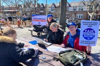 For thousands of New York City educators, the workday doesn’t end when the school day is over. Across the city, Contract Action Teams organized grade-ins where UFT members did their work in public spaces to highlight their fight for a fair contract.
