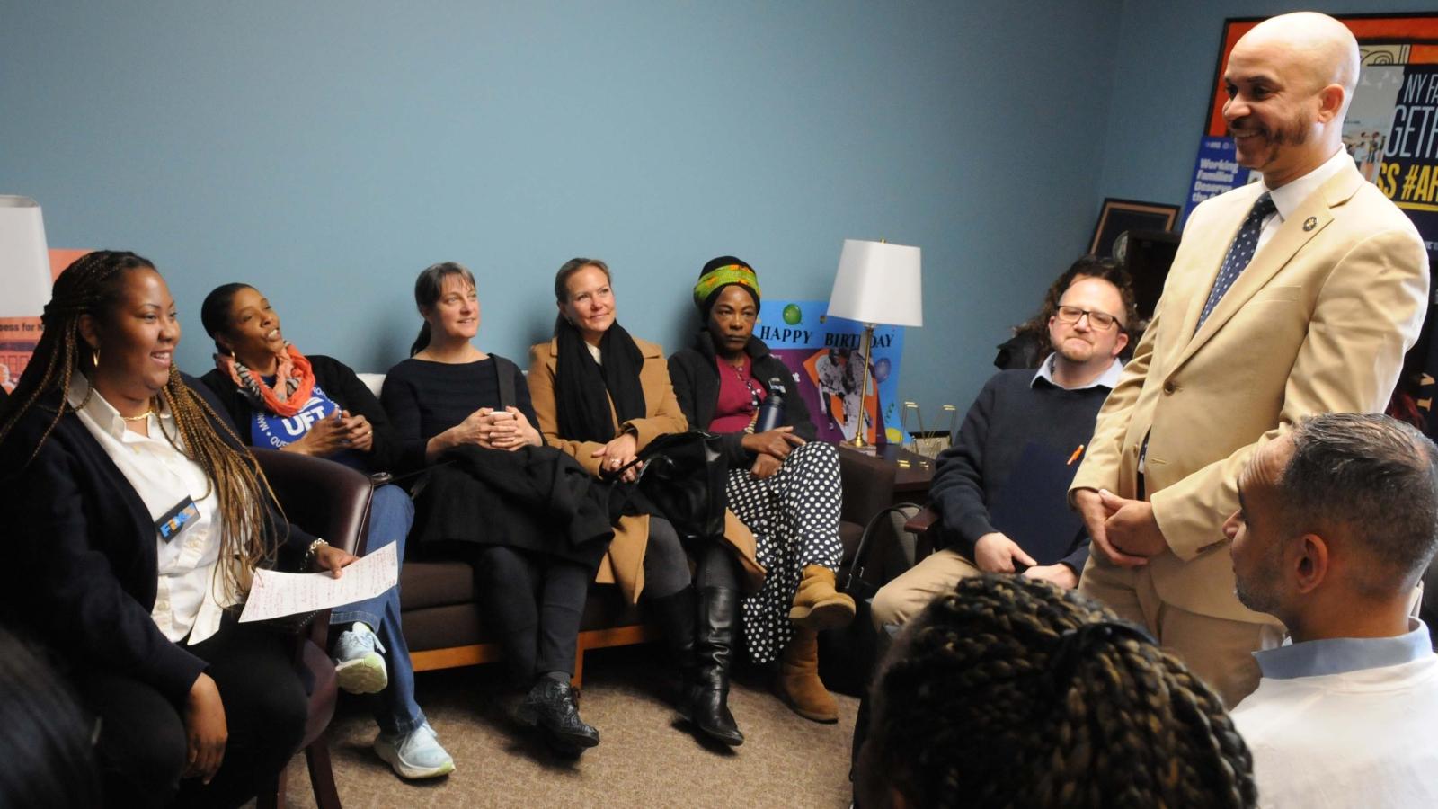 MAKING THE CASE: UFT members from District 6 in Manhattan talked to Assembly Member Manny De Los Santos from Inwood about the union’s legislative priorities on Lobby Day on March 11.