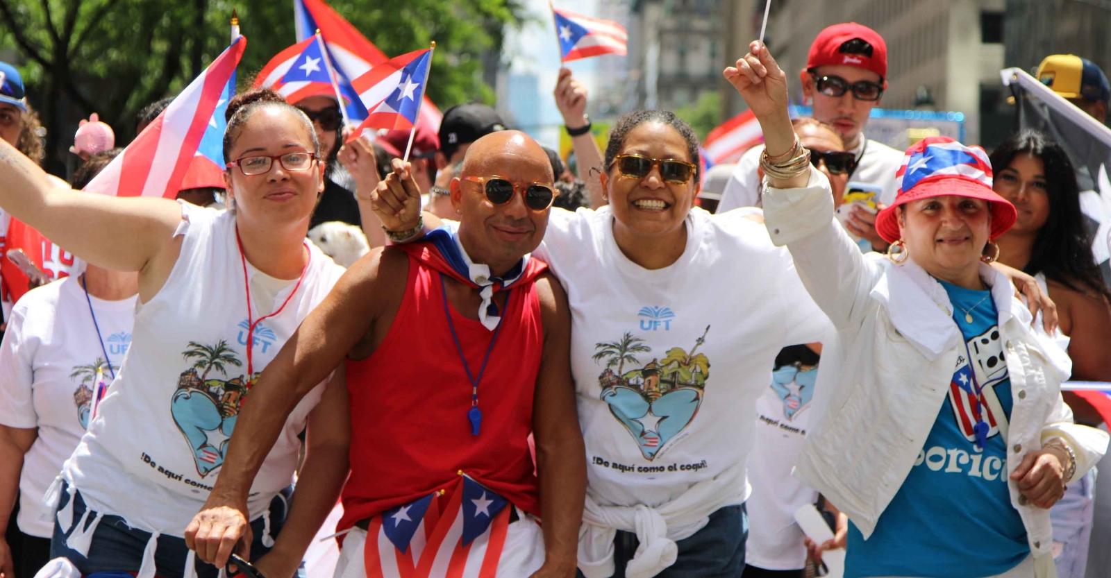 BORICUAS PRESENTE!: These four in-service and retired members from District 75 were among the hundreds of UFT members who turned out on Sunday to march with their union in the Puerto Rican Day Parade.