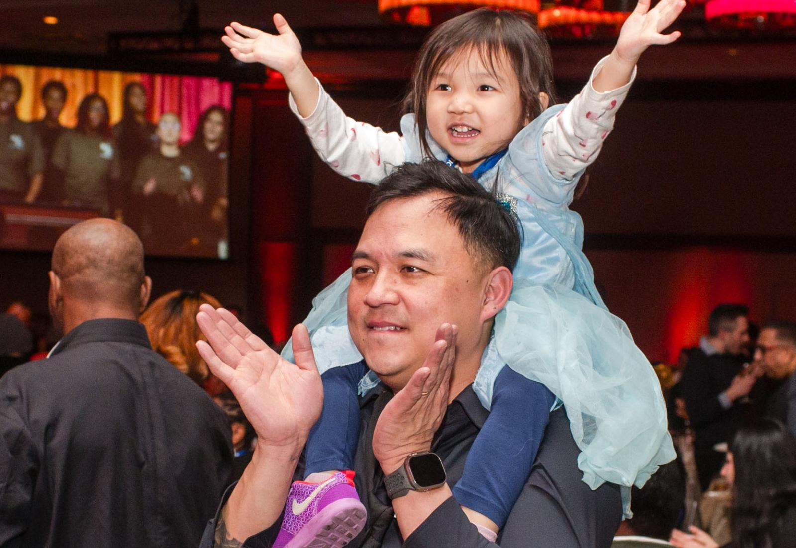 SERVING UP EXCELLENCE: Honoree Neil Syham, a culinary arts teacher at Francis Lewis HS in Queens, celebrates with his daughter at the UFT CTE Awards at the Sheraton Hotel on Feb. 26.