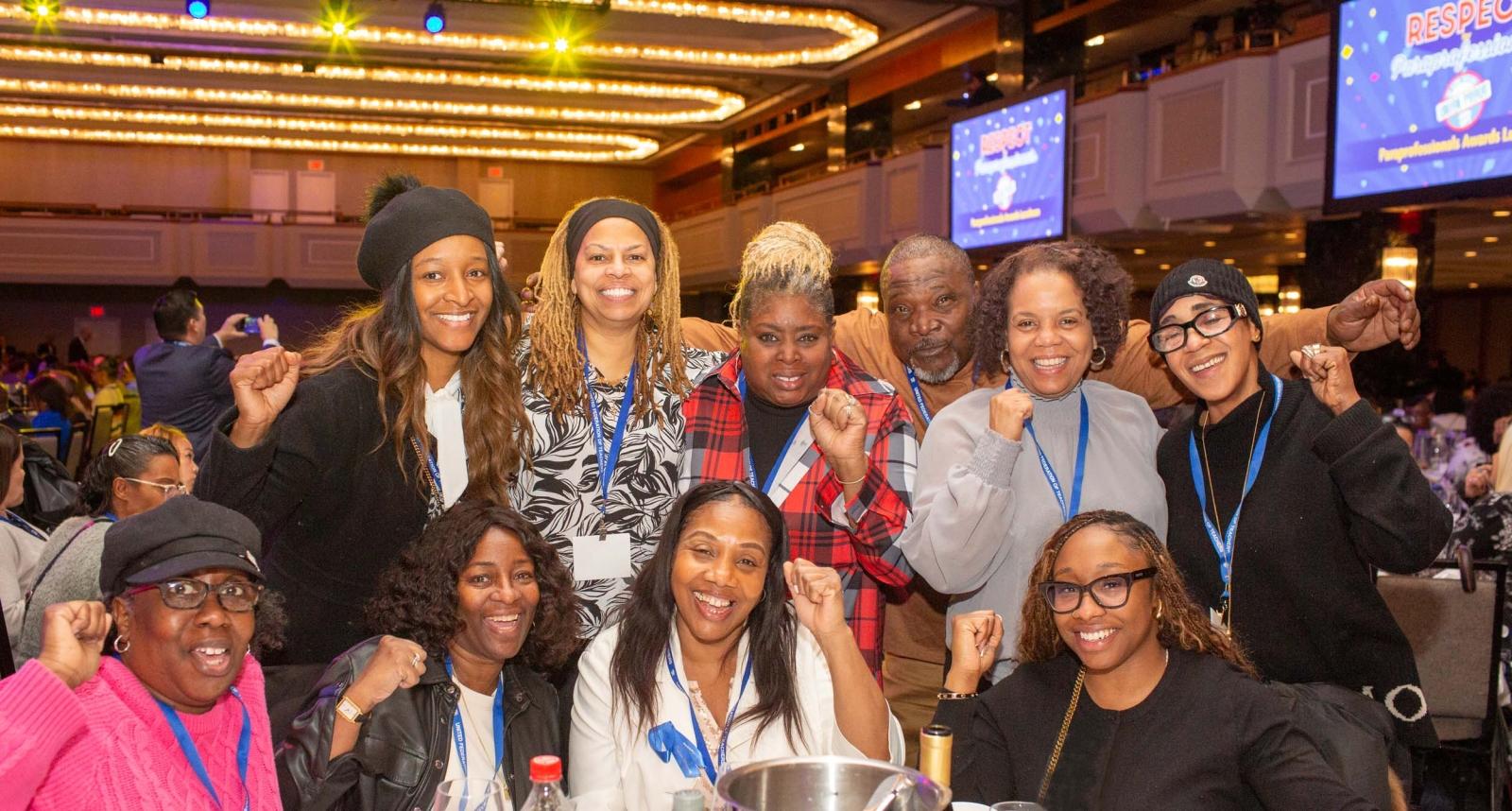 HONORING PARAPROFESSIONALS: Trina James (seated in white), a paraprofessional at PS 180 who was one of the Manhattan award winners, is cheered on by her colleagues at the Paraprofessional Awards Luncheon at the New York Hilton Midtown on Saturday.
