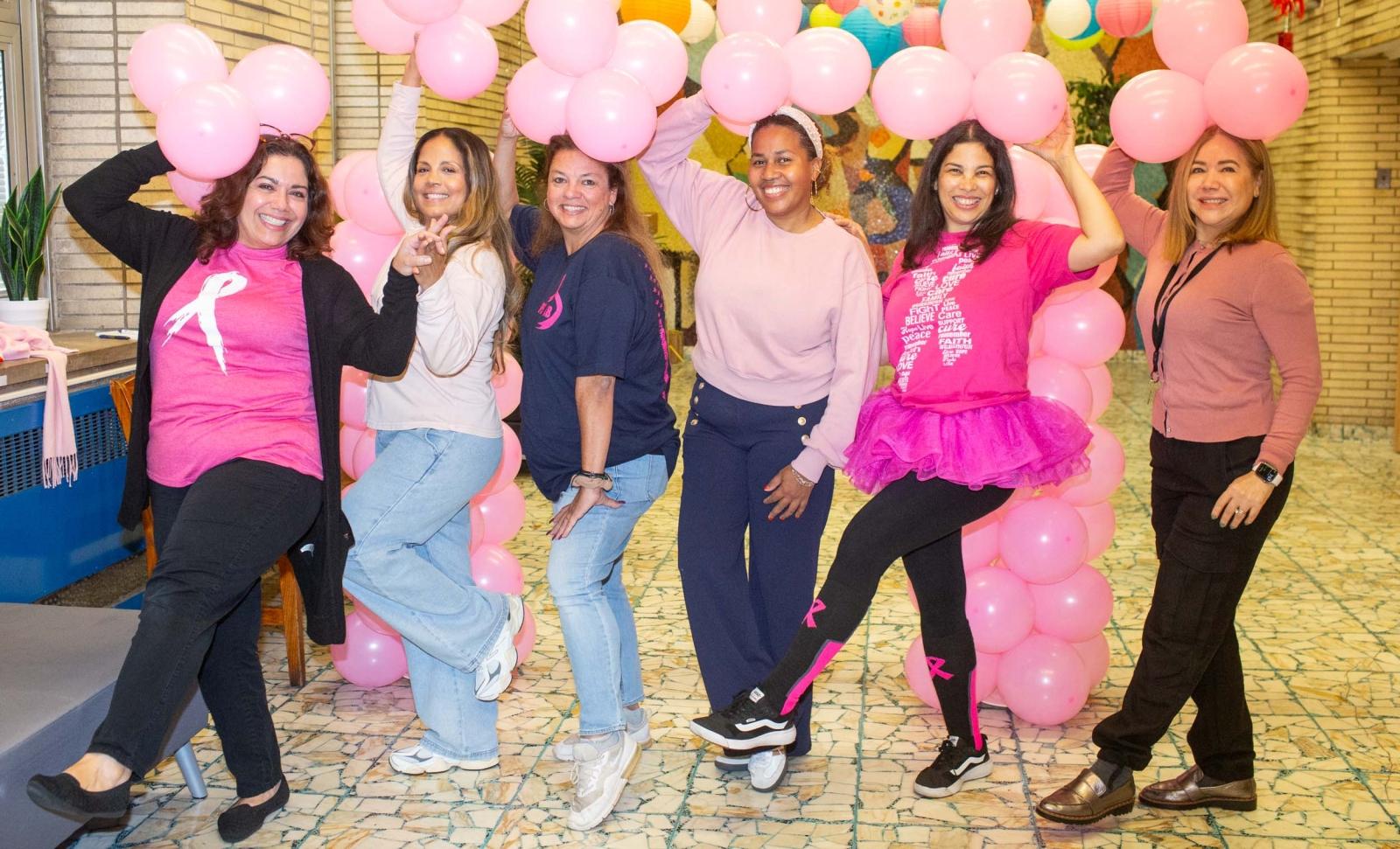 POSITIVELY PINK: Chapter Leader Elkis Felice (in pink tutu) and fellow members from PS 28 in Manhattan show their support on Oct. 15 for a colleague recently diagnosed with breast cancer — and for all survivors, as well as in memory of those who have lost their lives to the disease.