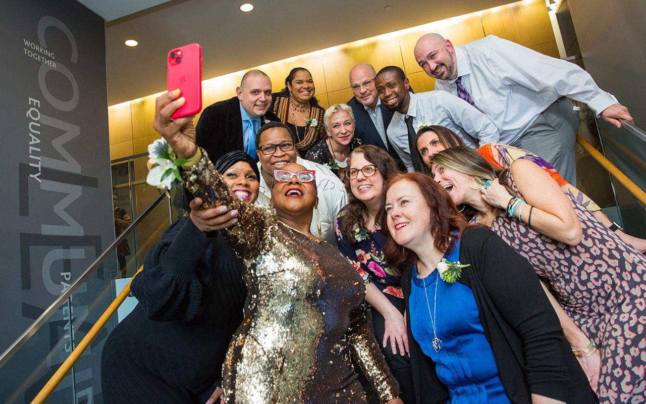 Muneerah Young (second from left), a teacher at the Thurgood Marshall Academy for Learning and Social Change in Harlem, celebrates her Outstanding Union Activist award with family and friends.