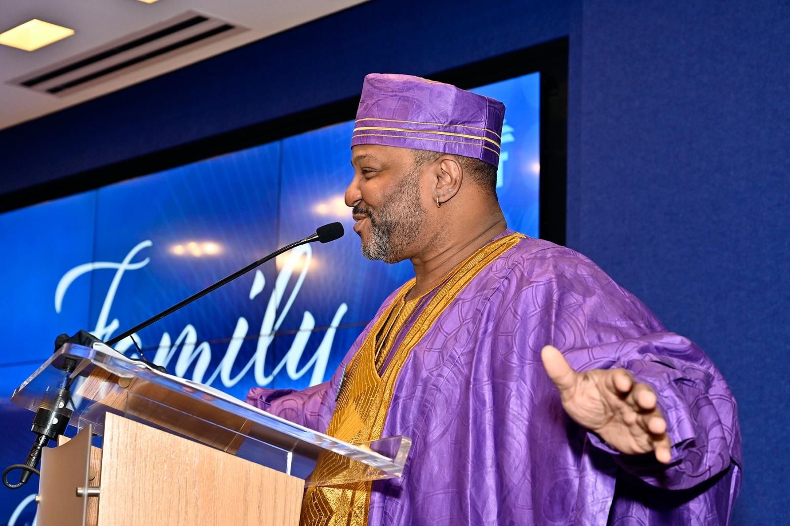 Staff Director Anthony Harmon, the event’s master of ceremonies, welcomes members and their loved ones to the event.