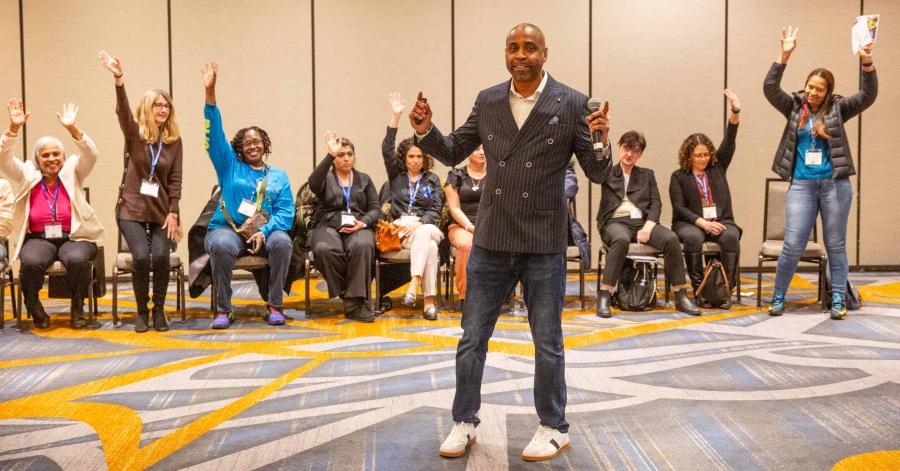 Juelle Washington, a paraprofessional at the Urban Assembly Institute of Math and Science for Young Women in Brooklyn, was moved by watching a clip from the movie “Inside Out” in the workshop “Behavior Management: Healing–Centered Practices in the Classroom.” The scene contrasted two reactions to a character in distress — being dismissive and acknowledging the experience.