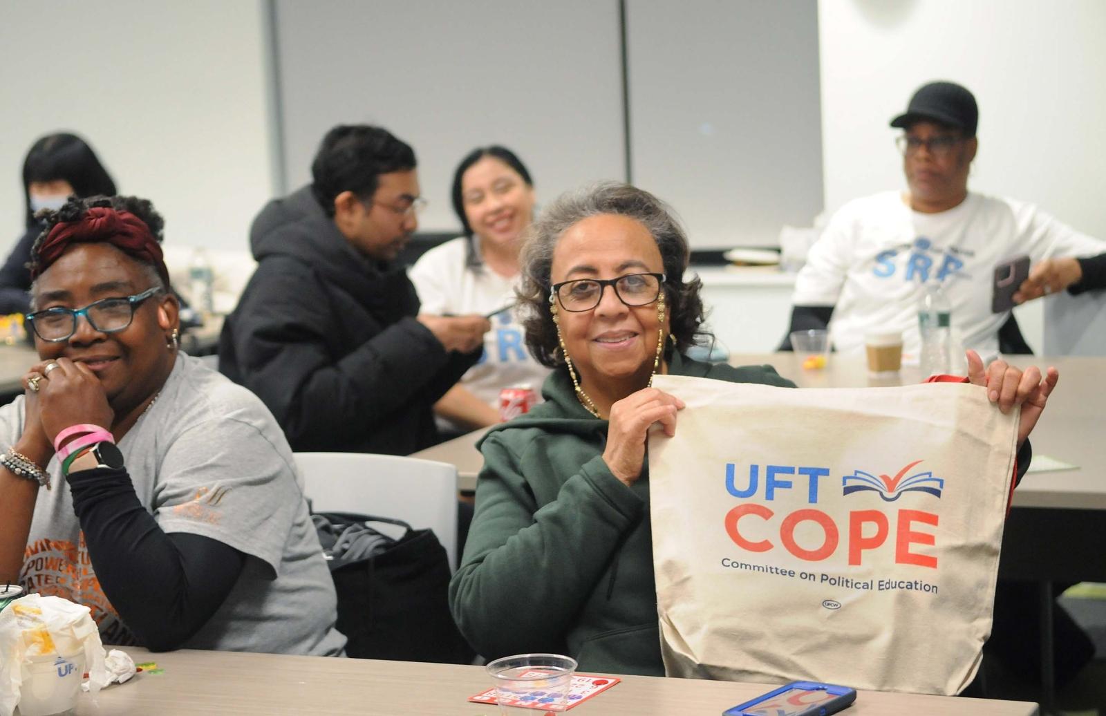 More than three dozen UFT members turned out for fun and games at Bingo Night at the union’s Queens borough office on Nov. 22 to raise awareness of the Committee on Political Education (COPE), the union’s political action arm that is funded fully by voluntary contributions. Before the bingo, members enjoyed classic board and card games such as Uno, spades, Chutes and Ladders, Jenga and Connect 4. “It was a nice way of winding down after a stressful work week,” said Trina Zeigler, a paraprofessional at PS 206 in Queens, adding that she “learned that COPE is the political voice for members to improve the contract and rights and to fight for resources and tools for our children and schools.” UFT District 25 Representative Lamar Hughes, the Queens political action coordinator, said a number of members increased their COPE contributions before the night was through. A special thank-you and shout-out went to Vernetta Deshommes, a teacher at PS 136 in District 29, Queens, and the Queens UFT COPE liaison, for putting the night together.