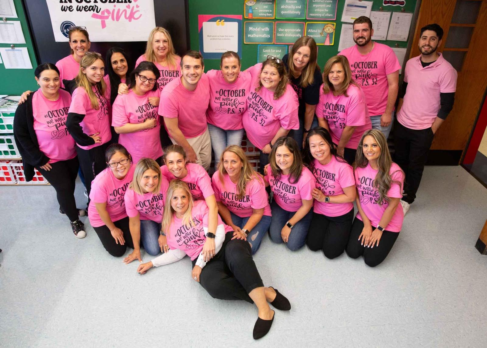 Members from PS 52 on Staten Island show their solidarity in the fight against breast cancer.
