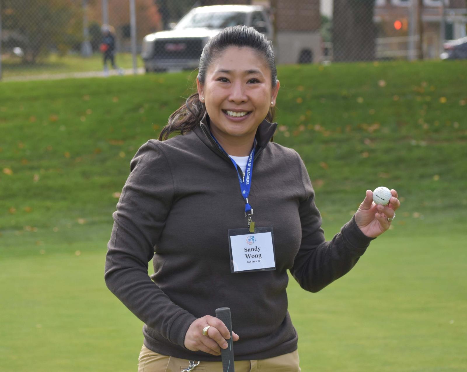 Chapter Leader Sandy Wong of PS 30 in the Bronx enjoys a day on the links to benefit the UFT Disaster Relief Fund.