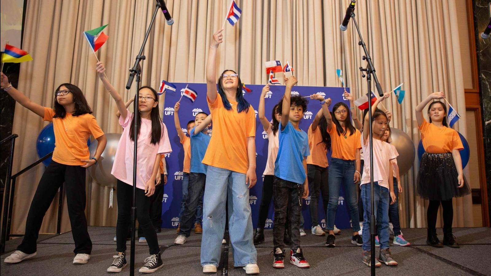 The chorus from PS 130 in Chinatown gives a performance celebrating Asian and Latin American music traditions.