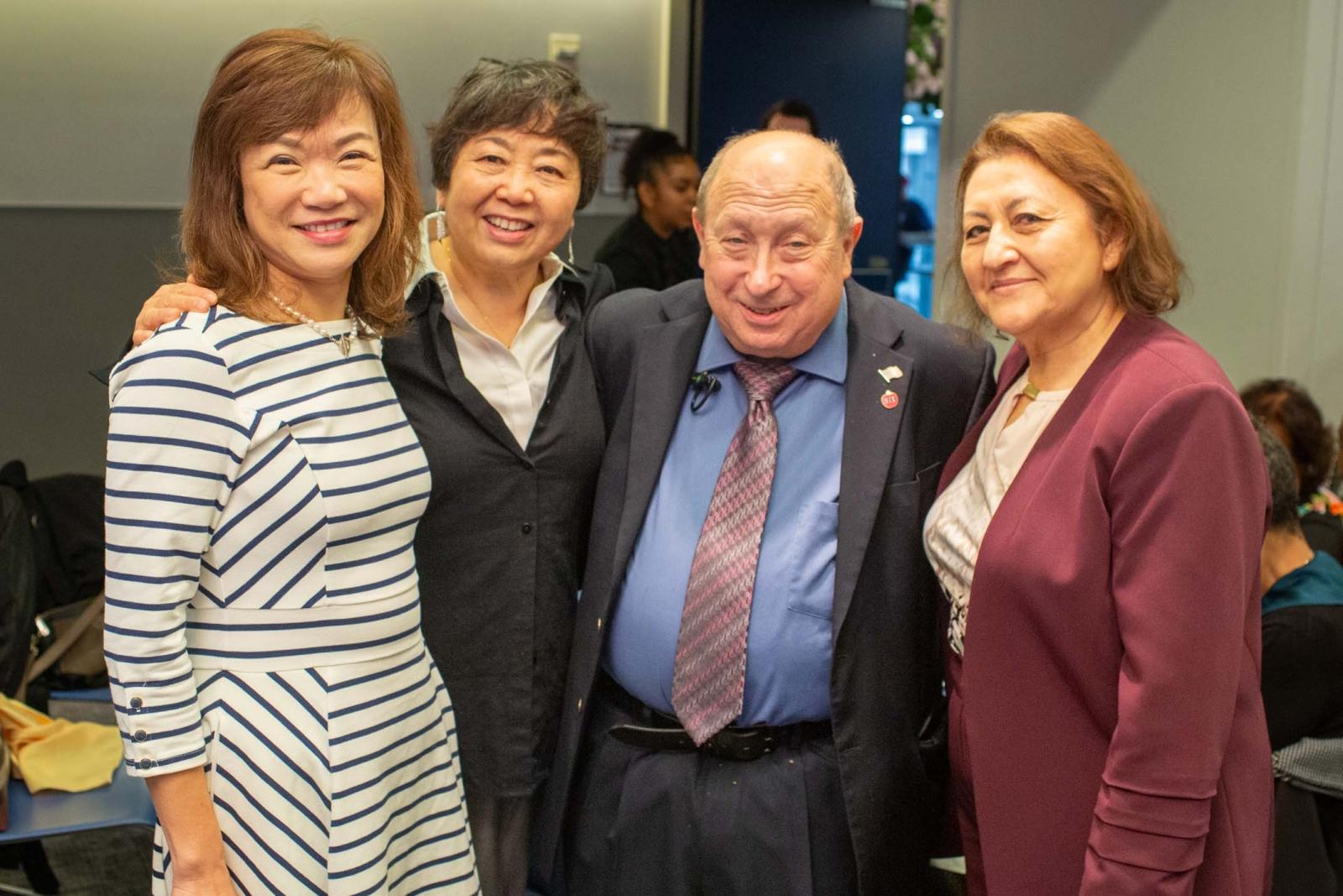 Retirees (from left) Cindy Peng, Ping Wang, Ken Achiron and Cecilia Aquilar from Long Island City HS enjoy an impromptu reunion.