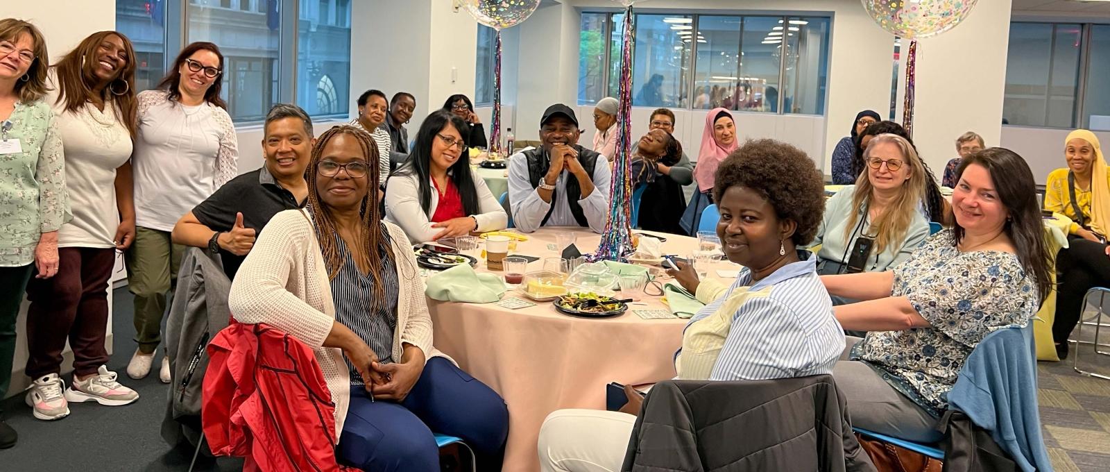 Fifty school nurses gathered for their chapter’s annual School Nurses Appreciation Dinner at UFT headquarters on May 7, timed to coincide with National School Nurse Day. “We get to catch up on happenings at other schools with fellow school nurses,” said Bernard Gabriel of P168 @ P842 in the Bronx. Another Bronx nurse, Michelle Go of P723 @ P927, cited the “great fellowship” and chance to learn “new information” and talk shop with colleagues. The nurses also met with and asked questions of UFT experts and leaders, including UFT President Michael Mulgrew, played the always-popular bingo game and took home some UFT swag and other giveaways. “Events like this offer opportunities for interaction, which can help to create stronger relationships,” School Nurses Chapter Leader Cynthia Bennett said. “And the recognition we give helps create a positive and inclusive environment.”