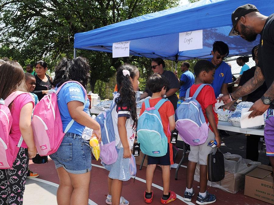 The North Shore Alliance, one of the union’s partners, set up a kindergarten resource fair that included a school bus so new kindergartners could experience riding one prior to the school year. Staples, the Staten Island District Attorney’s Office and New York Cares distributed other supplies. The New York Center for Interpersonal Development provided the hot dogs and hamburgers. MetroPlusHealth provided an ice cream truck, while District 31 helped staff the event with the borough’s parent coordinators.