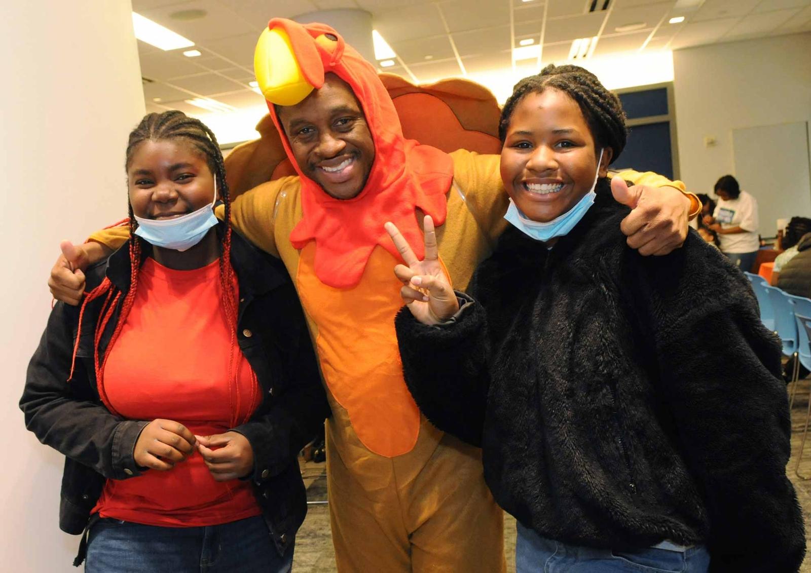 "Good job!" Ilyana Frias told a 5-year-old kindergartner from PS 92 in Harlem as he worked at a craft table during the UFT's Thanksgiving Luncheon for children in need on Nov. 19 at union headquarters in Manhattan.
