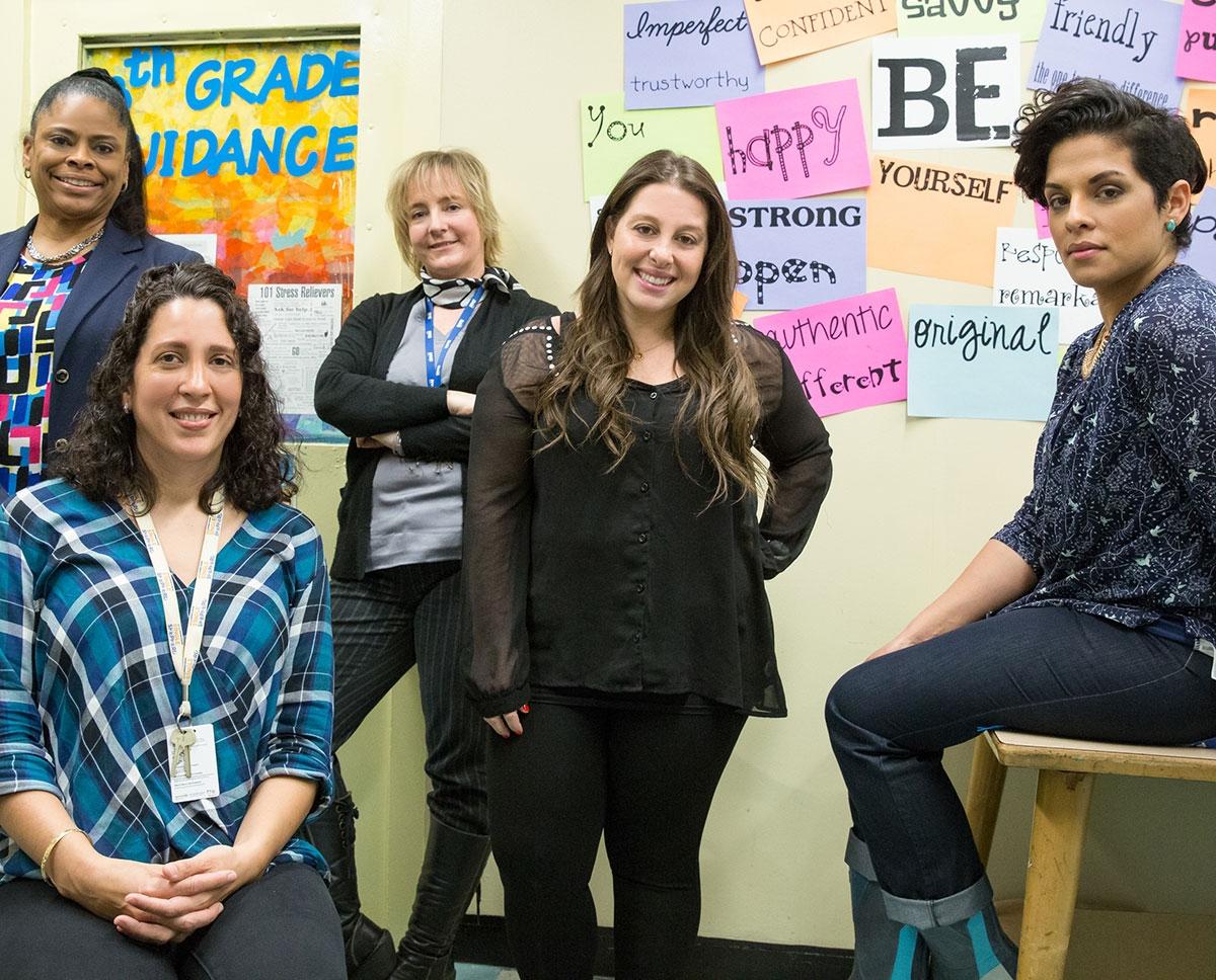 The participating guidance counselors and social workers attend monthly training in therapeutic crisis intervention, LGBTQ issues, career counseling and other topics. As part of their work, they meet with students one-on-one and in groups and make sure parents are engaged with their children as well. They get to know the student in and out of the classroom, in after-school programs and even on home visits. They stay with their grade cohort until its members graduate from the school.