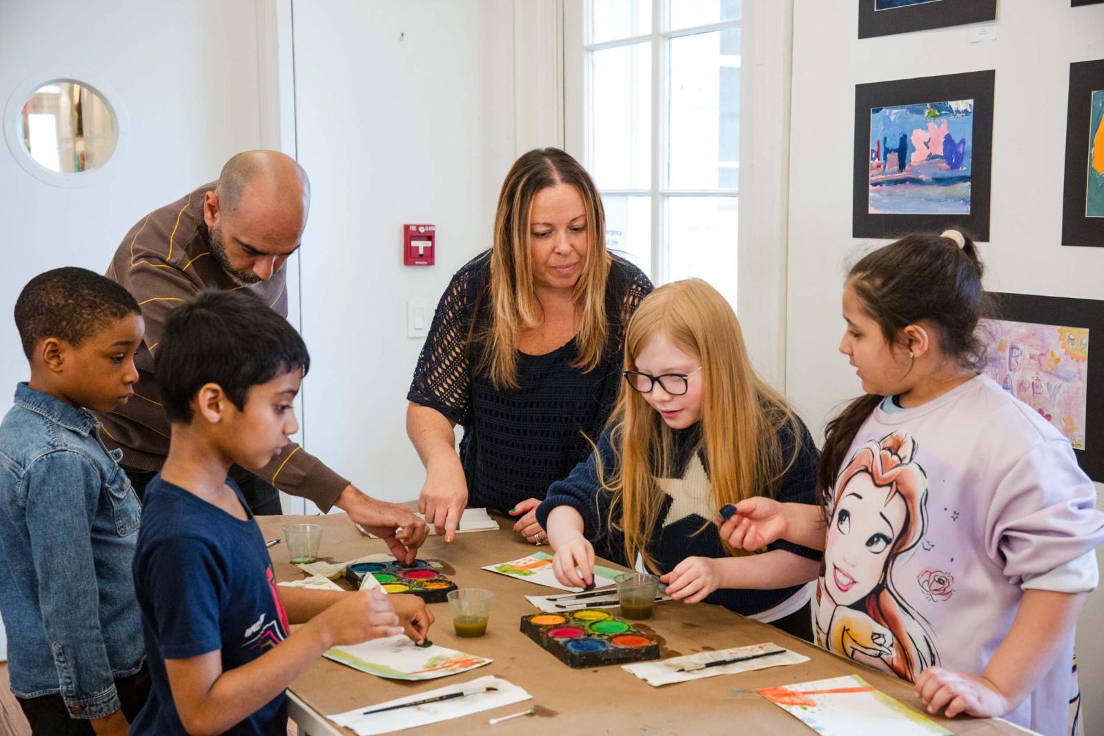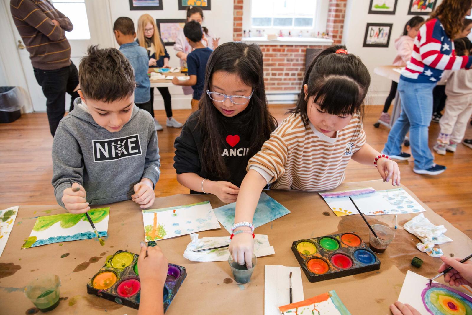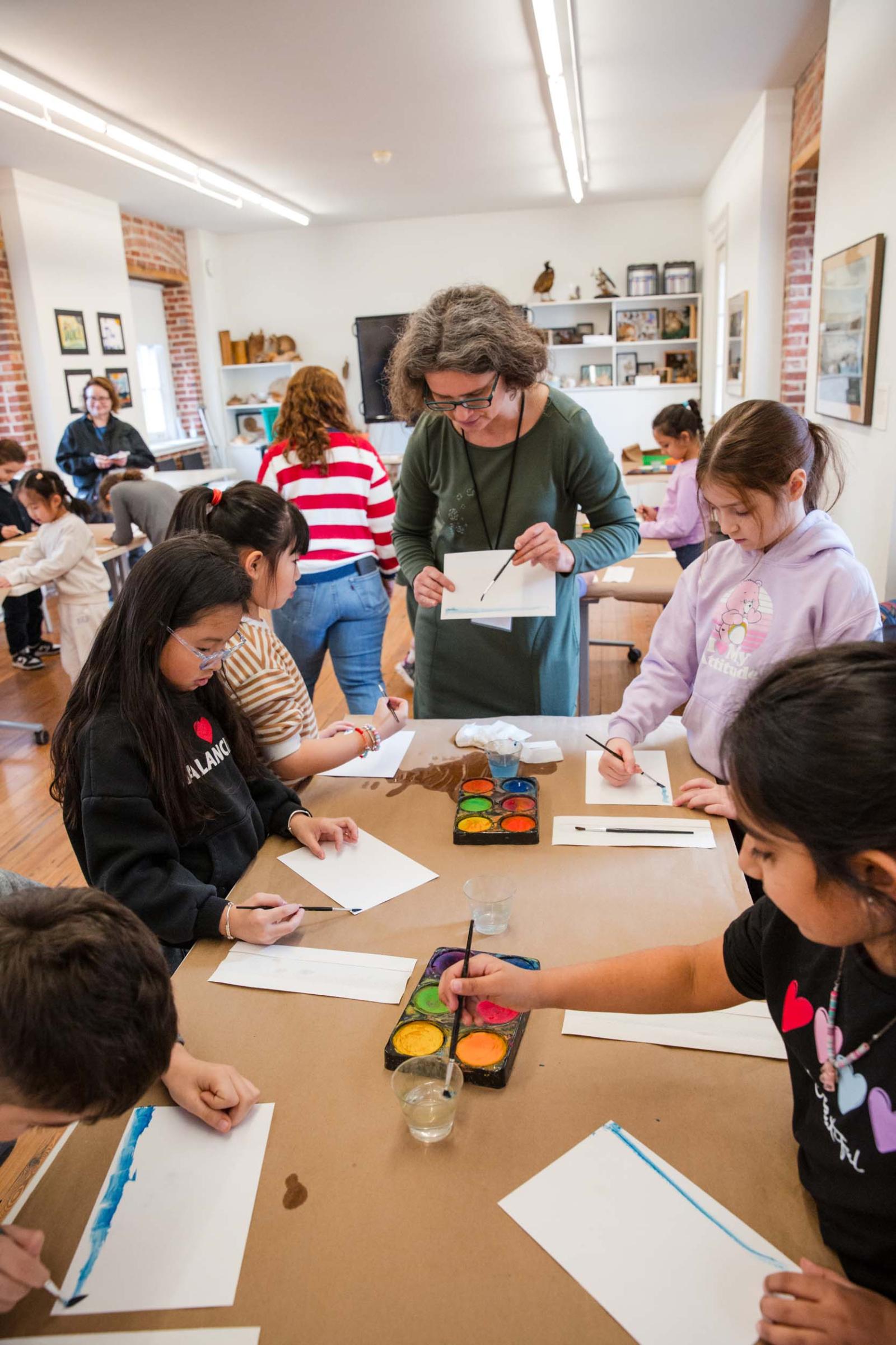 Students practice paintbrush techniques with guided instruction by museum educator Jenya Frid.