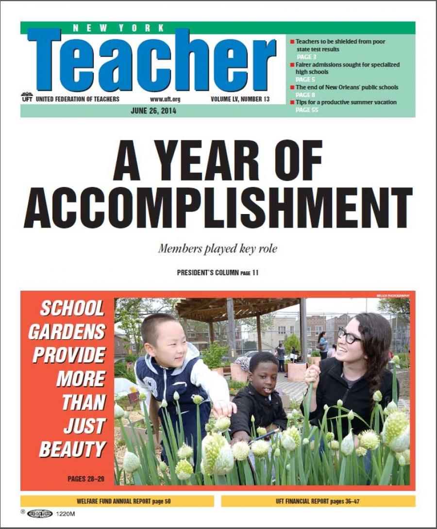 New York Teacher cover, March 27, 2014 - "What teachers say"