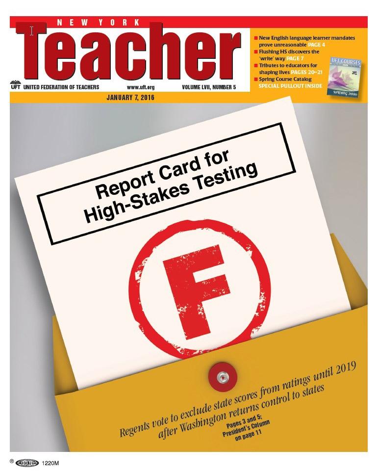 New York Teacher cover "Report Card for High stakes", January 7, 2016