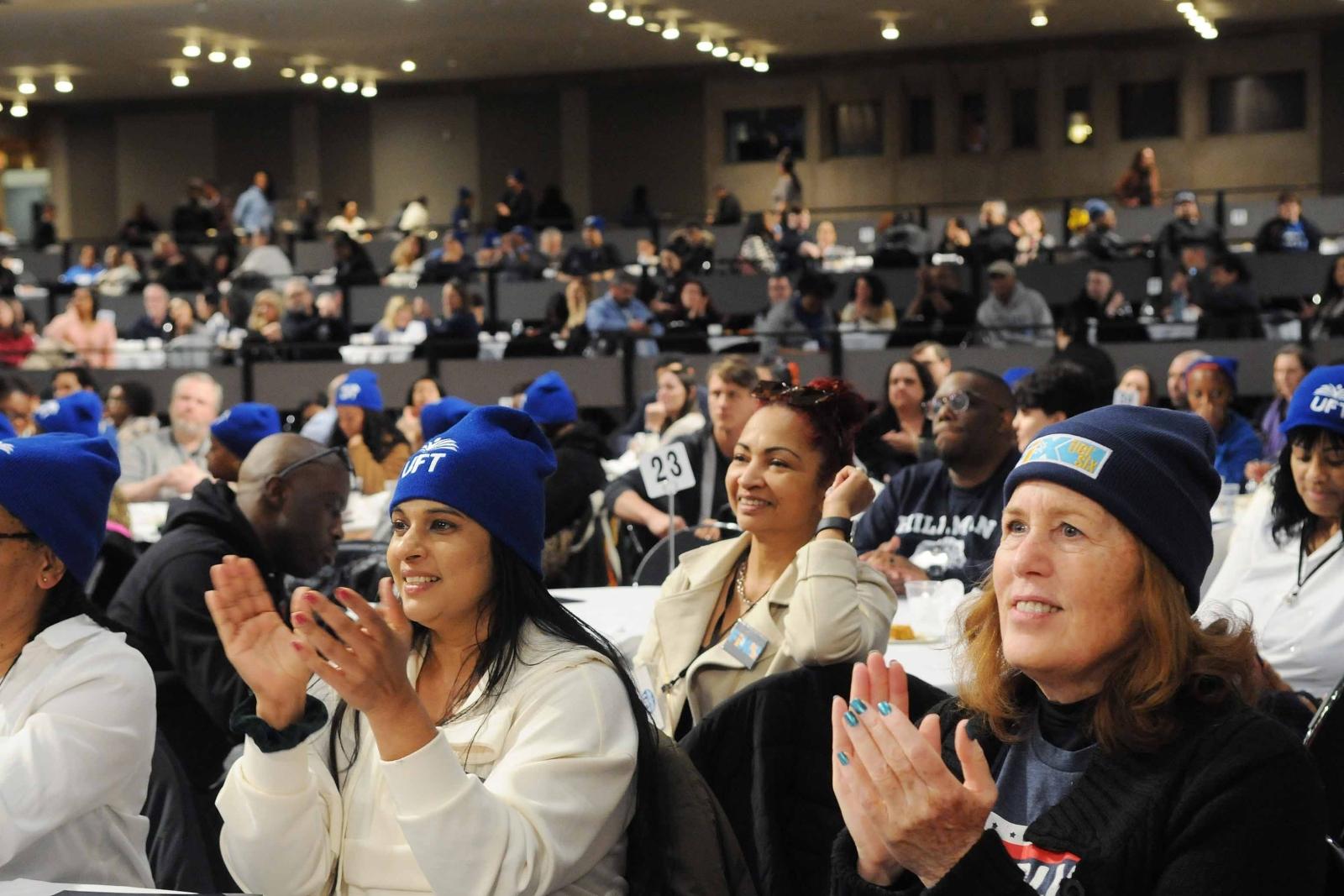 Upon their arrival, the educators and parents gathered in the Empire State Plaza Convention Center, where UFT President Michael Mulgrew, Gov. Kathy Hochul, State Comptroller Tom DiNapoli and legislative leaders addressed them.