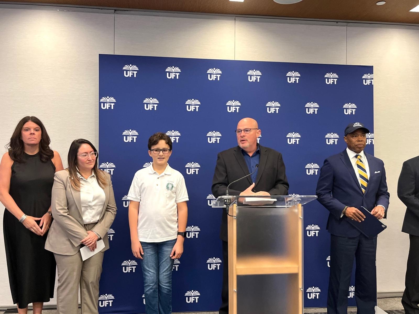 UFT President Michael Mulgrew, New York City Schools Chancellor Melissa Aviles-Ramos and Mayor Eric Adams announced the agreement at a press conference on Oct. 30 at UFT headquarters. Mulgrew called the change an “early holiday present.”