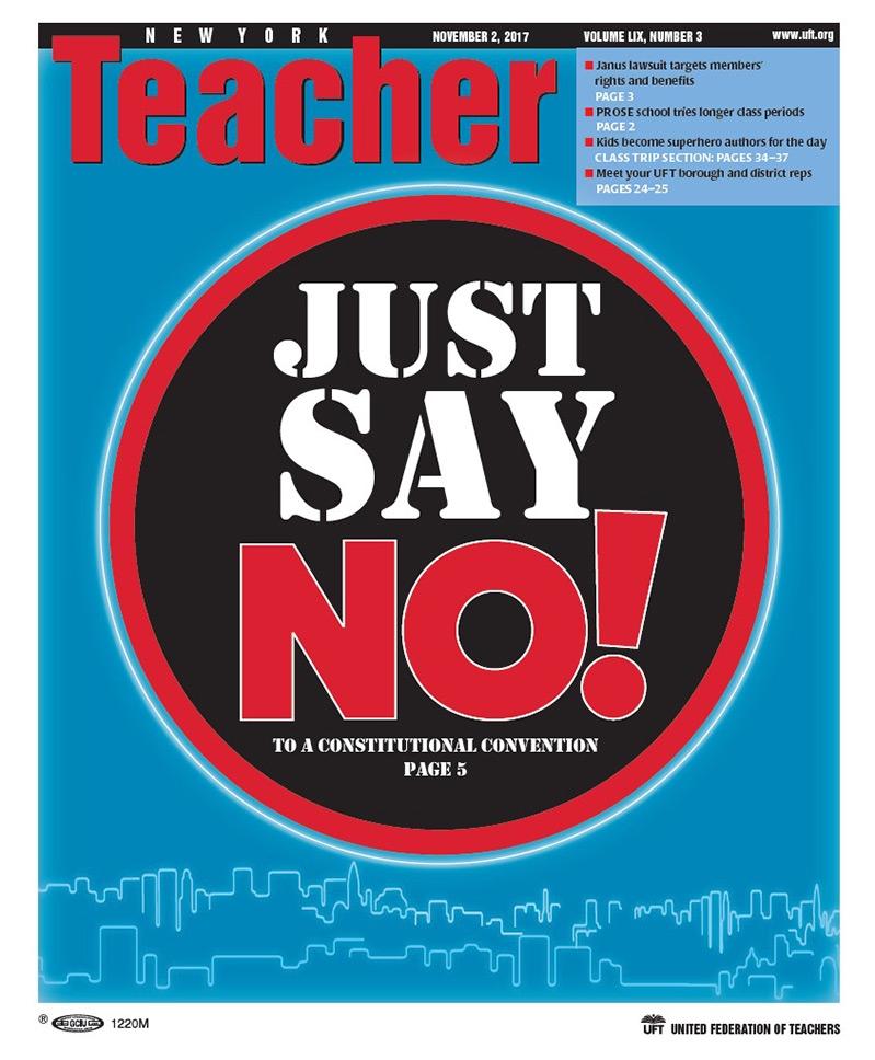 If the voters approve a convention, it will trigger a lengthy and expensive process of reviewing and revising the state constitution. The UFT, along with many other labor and civil rights groups, opposes a state constitutional convention because workers’ rights and benefits as well as civil rights enshrined in the state constitution — in some cases stronger than those guaranteed by the U…