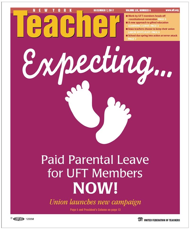 UFT members spend their days nurturing and supporting other people’s children, yet the Department of Education’s current parental leave policy forces them to choose between their newborns and earning a paycheck that is critical to the wellbeing of their families.