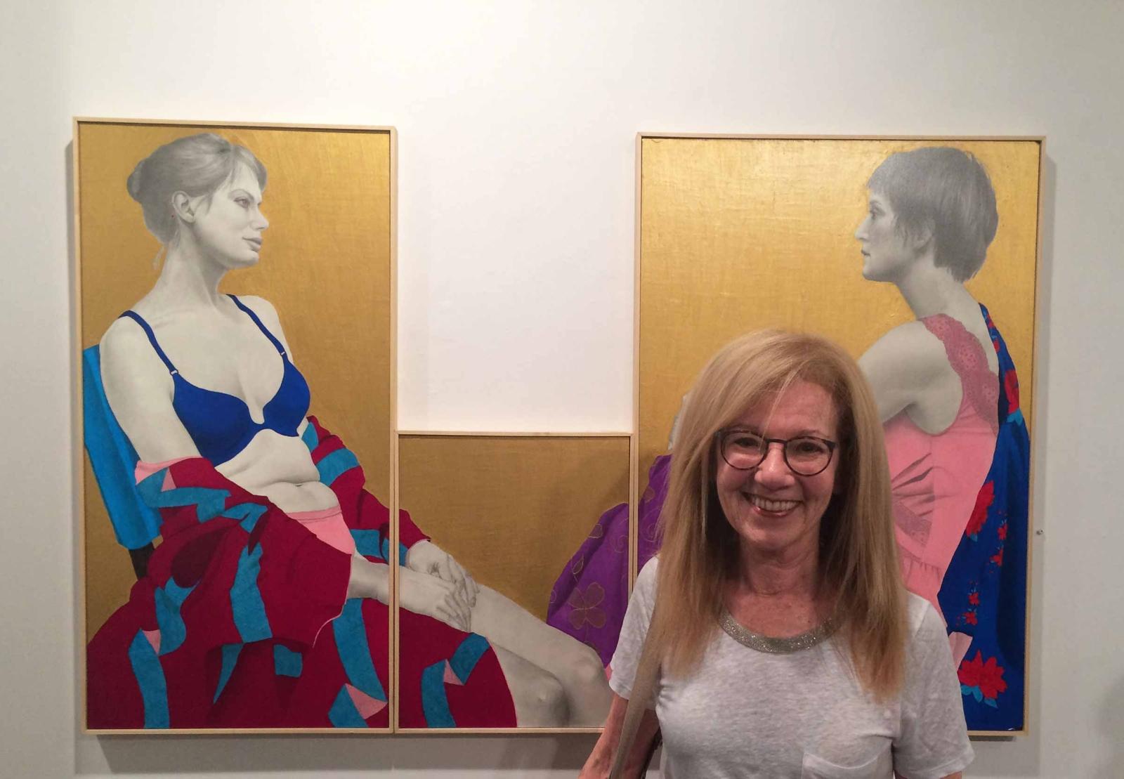 Retiree Gail Postal, who says her second career as an artist is "absolute pure joy," shows off her painting titled "Leslie and Rachel."