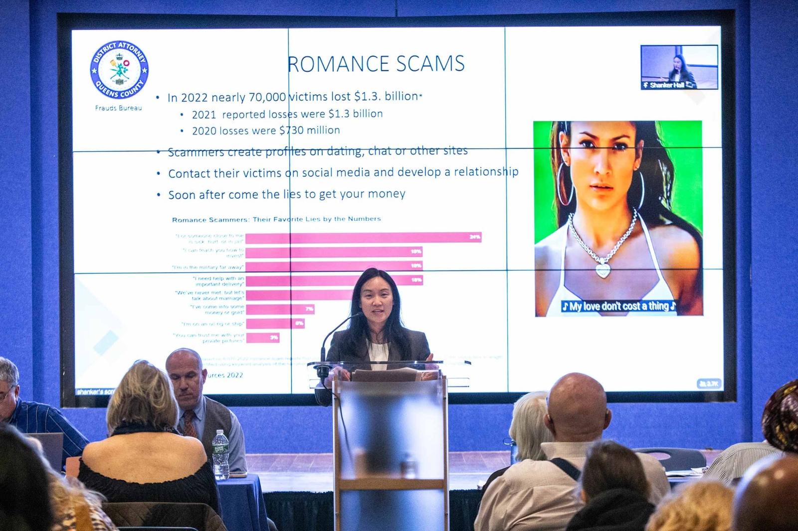 Elder fraud expert Anna Diao discusses romance scams, which cost victims $1.3 billion last year, at the May 1 RTC meeting.