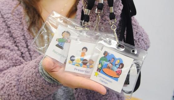 Gabriella Ramaglia uses lanyards to help her students remember their roles and responsibilities in small-group discussions.