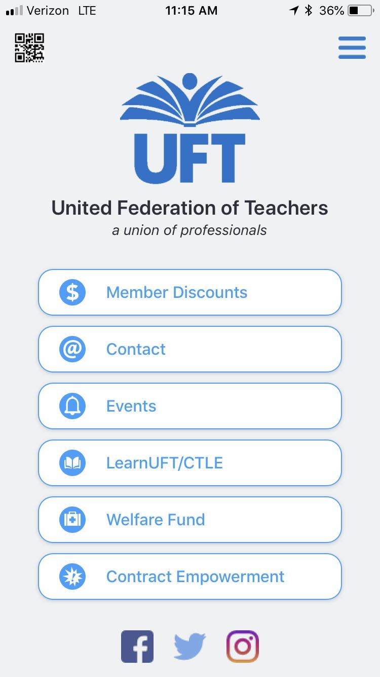 You will log into the app using the same username and password that you use for the UFT website. You won’t have to log in again unless you use the app to update your contact information. If you have trouble registering on the UFT website, please contact the UFT Membership Department at membership [at] uft [dot] org (membership[at]uft[dot]org) or 212-331-6311 for assistance.